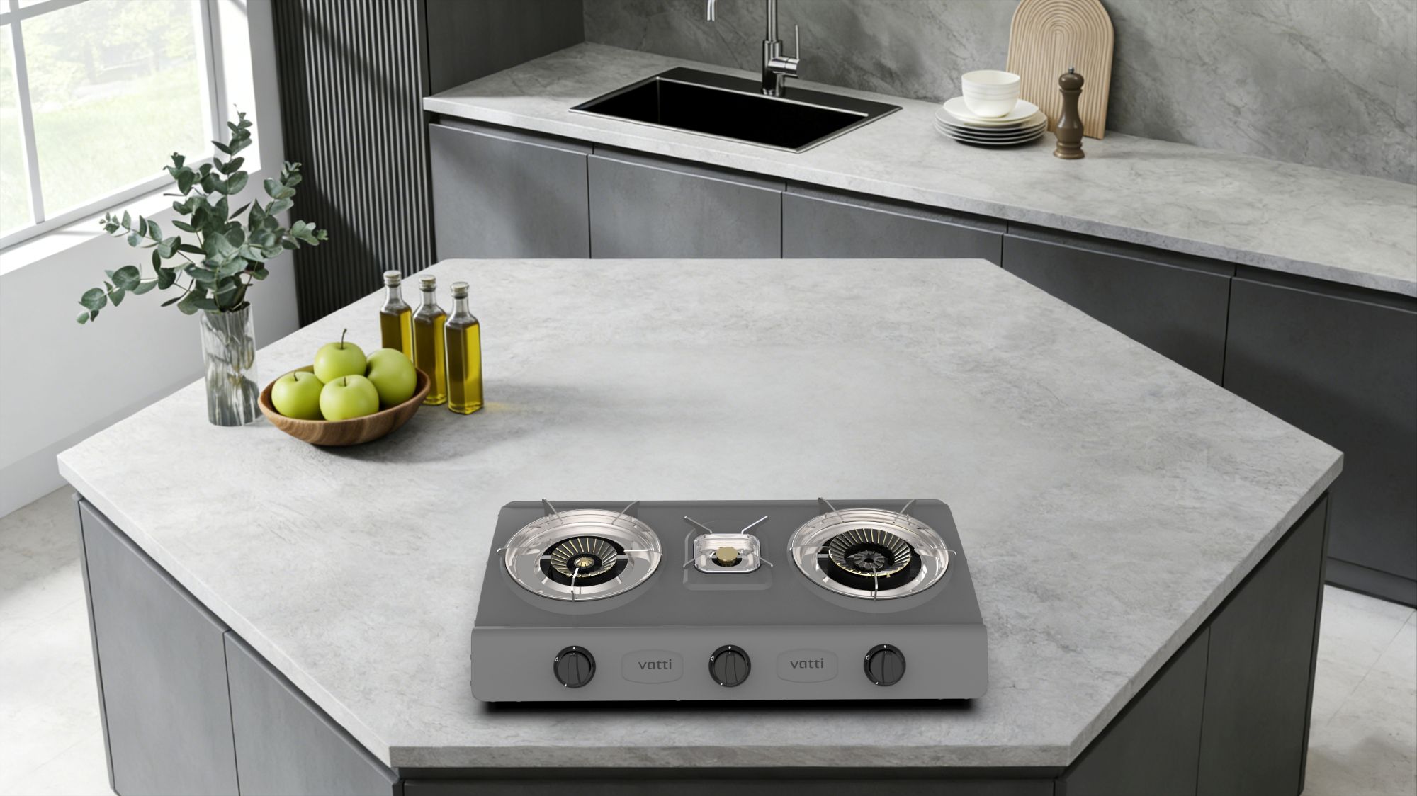 Chinabest Vatti CE approved 3A-01TRB three burners teflon coating tabletop gas stove