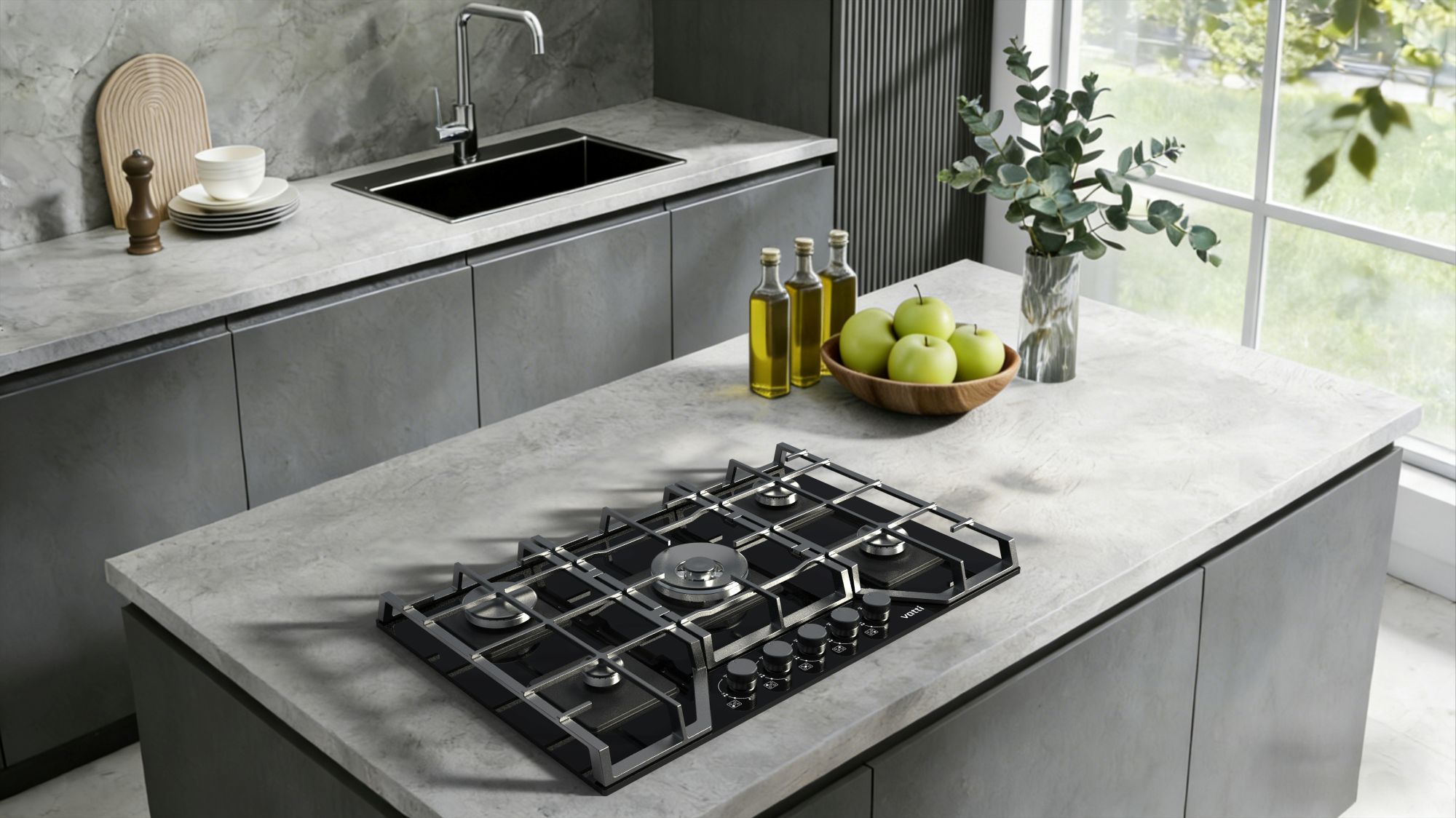 Chinabest Vatti GU01575G five burners tempered glass panel built-in gas hob