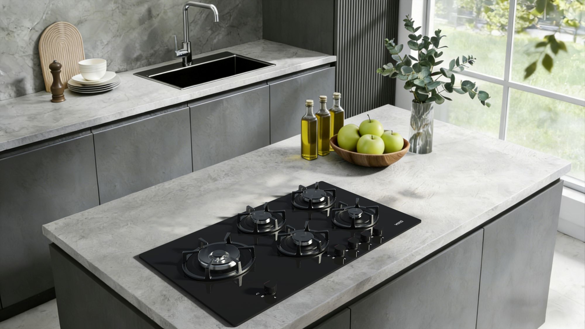 Chinabest Vatti G5903GCP five burners tempered glass panel built-in gas hob