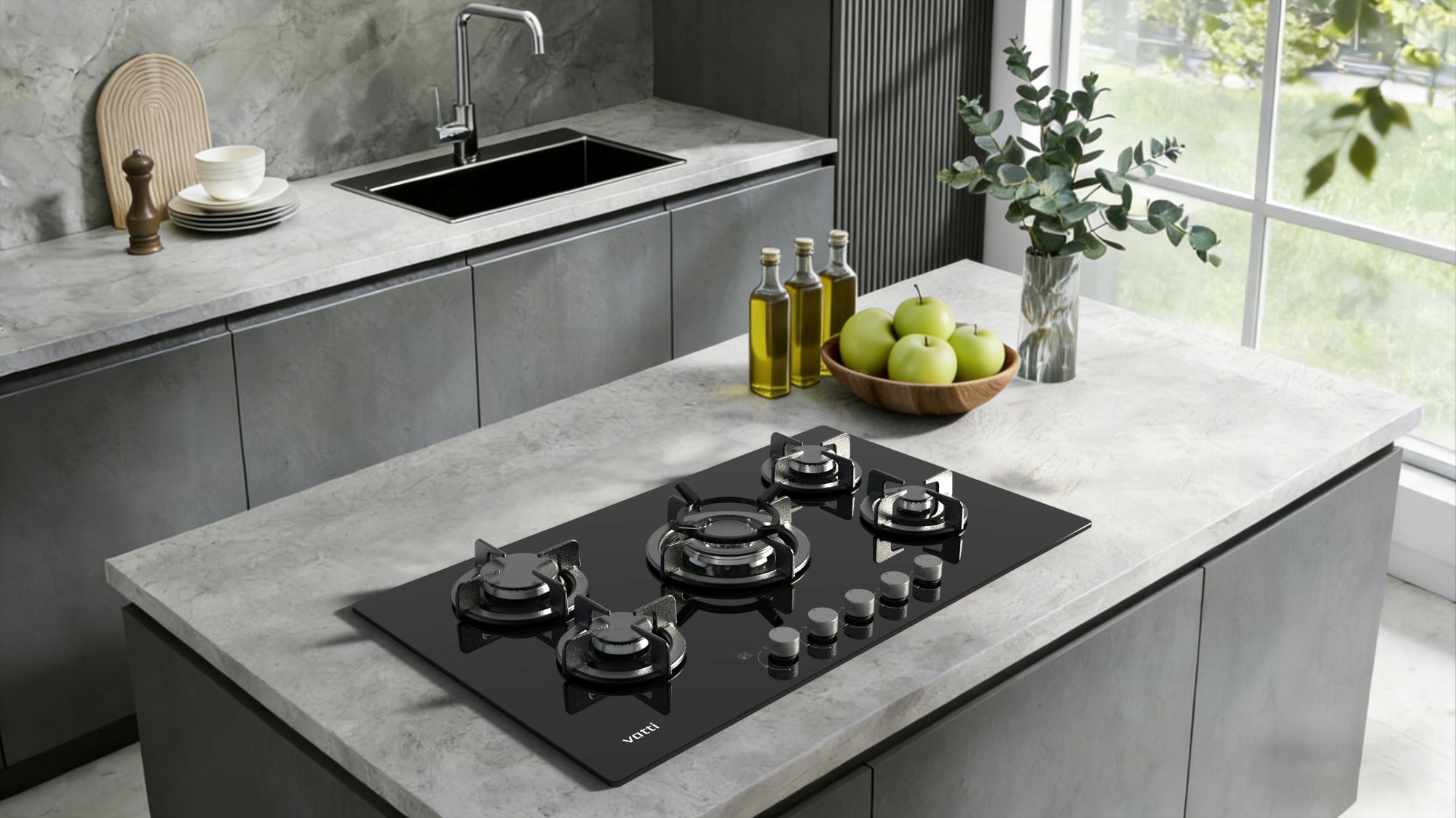 Chinabest Vatti CE approved G5811GCP five burners tempered glass panel built-in gas hob